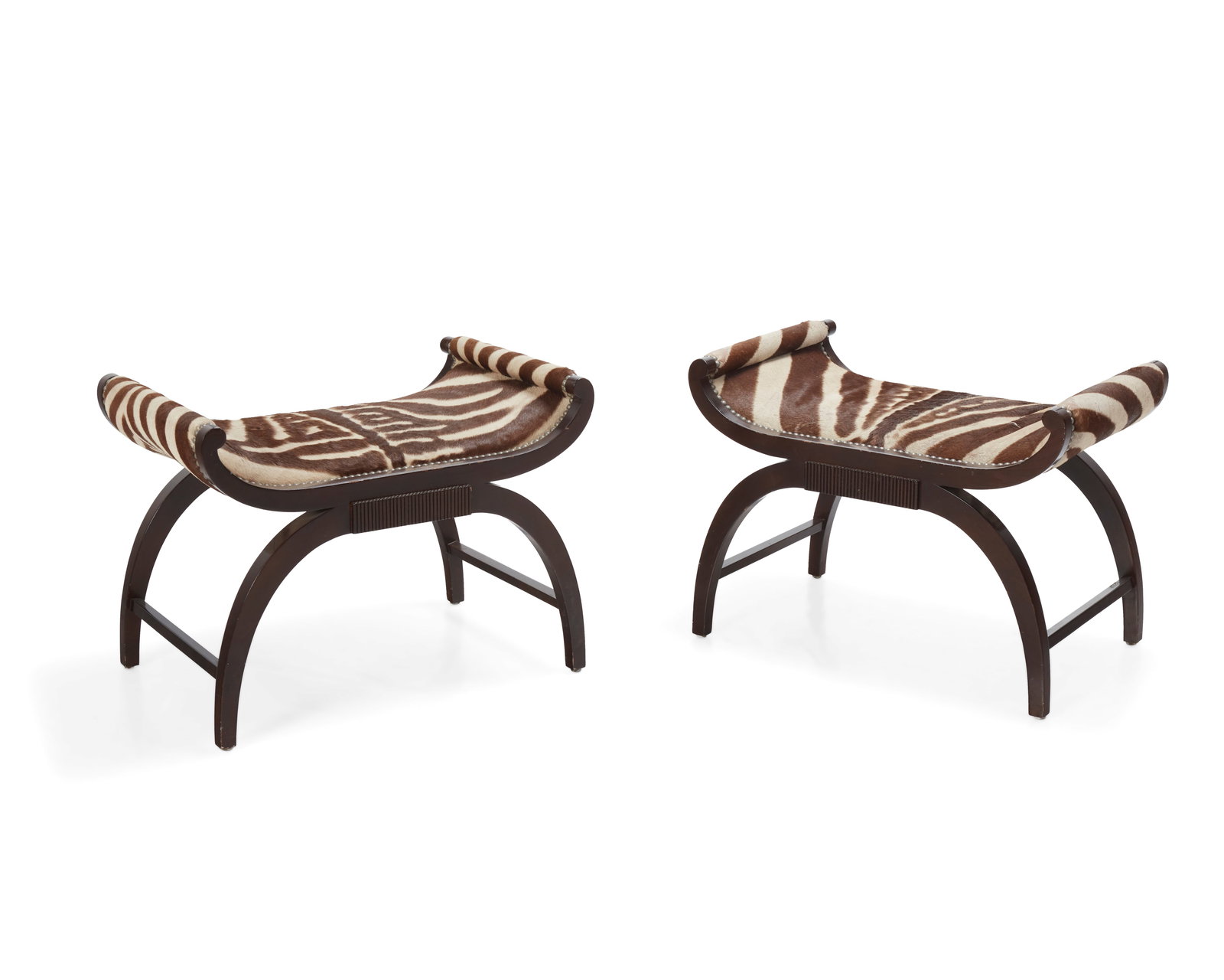A pair of scroll arm stools