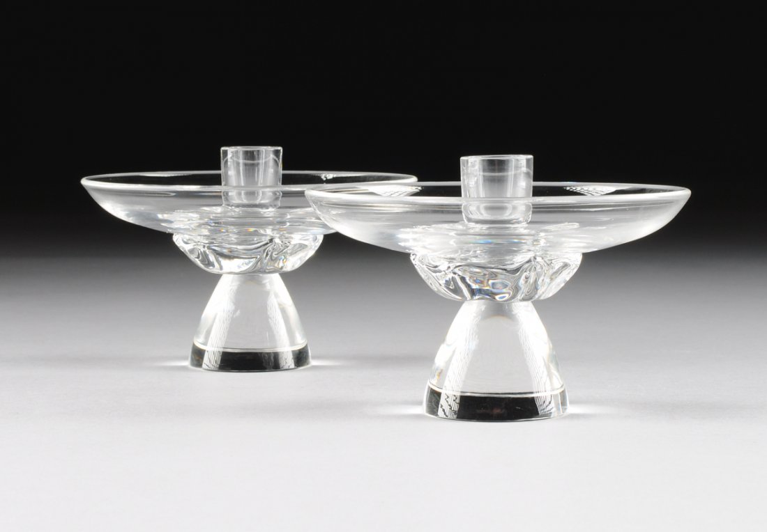 A PAIR OF STEUBEN CRYSTAL STAR CANDLESTICKS, PATTERN