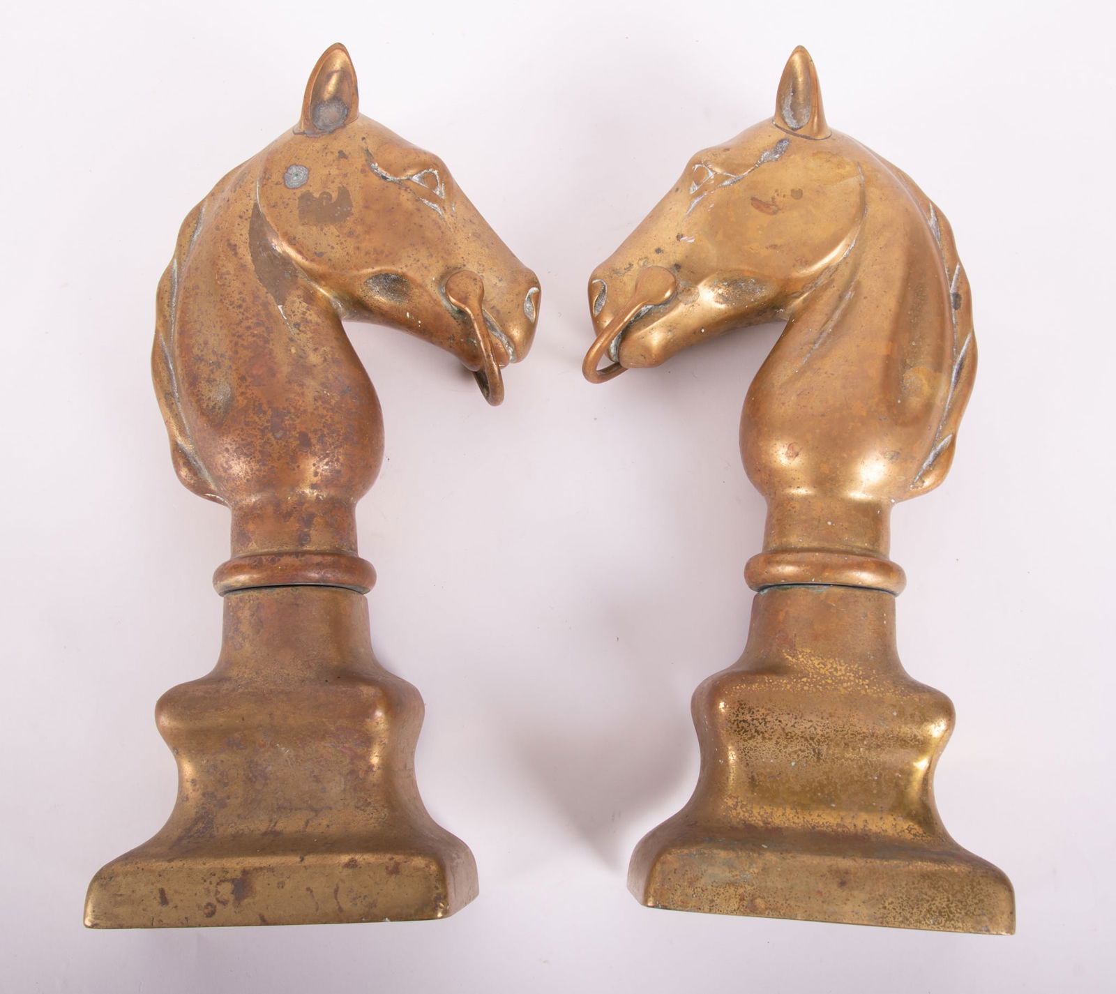 A Pair of Vintage Solid Brass Horsehead Hitching Posts