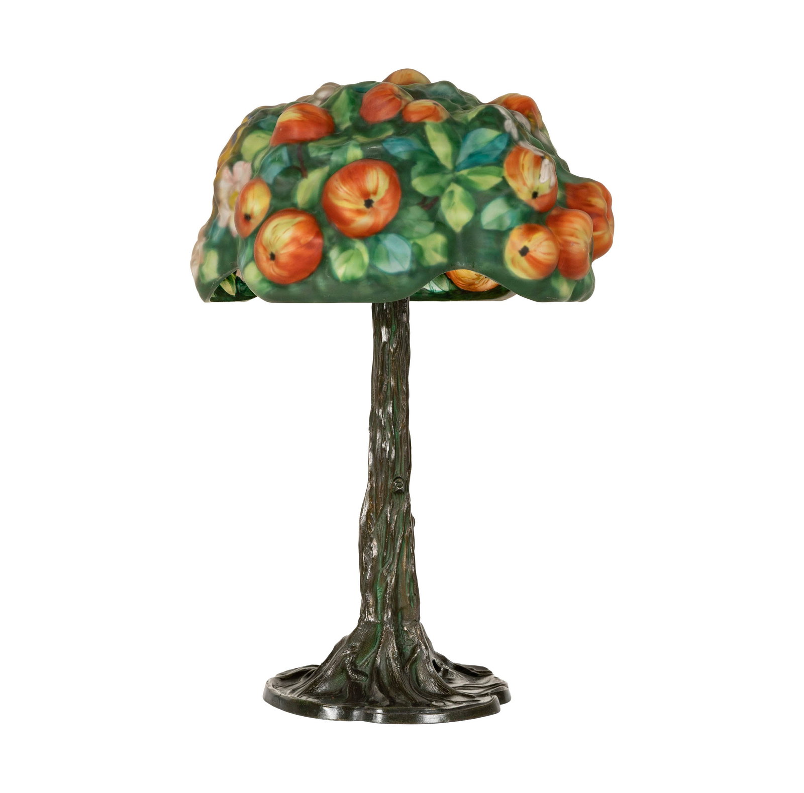 A Pairpoint Apple Tree Puffy Glass Table Lamp