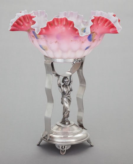 A PAIRPOINT SILVER-PLATED STAND WITH ENAMELED GL