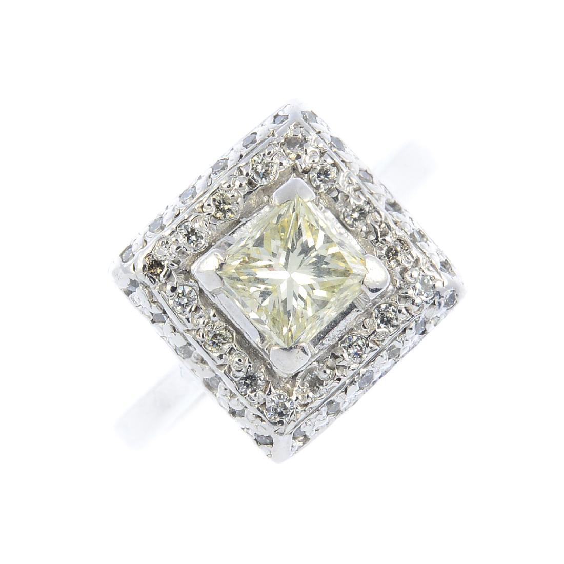 A palladium diamond cluster ring. The square-shape