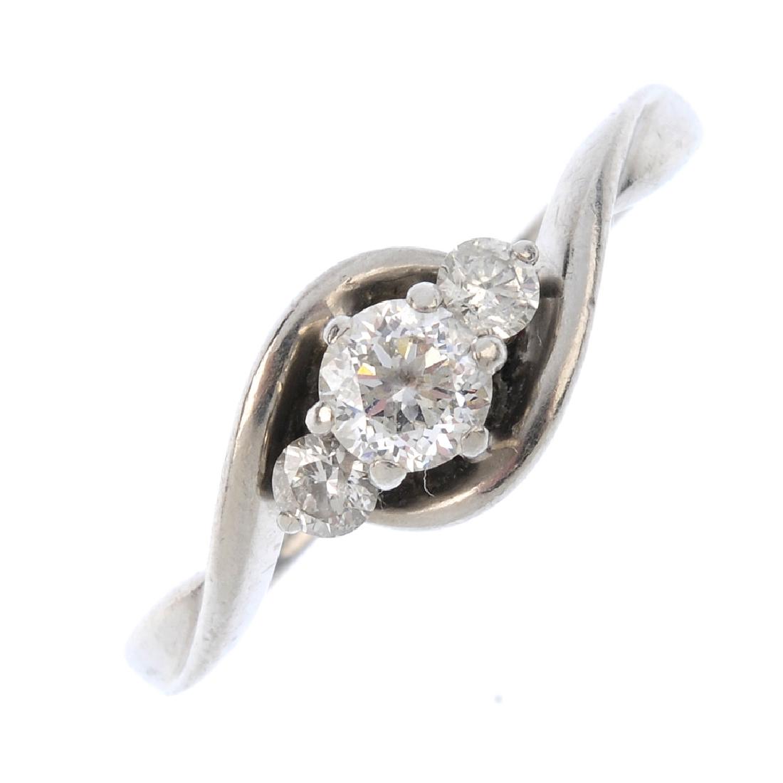 A palladium diamond three-stone ring. The graduated