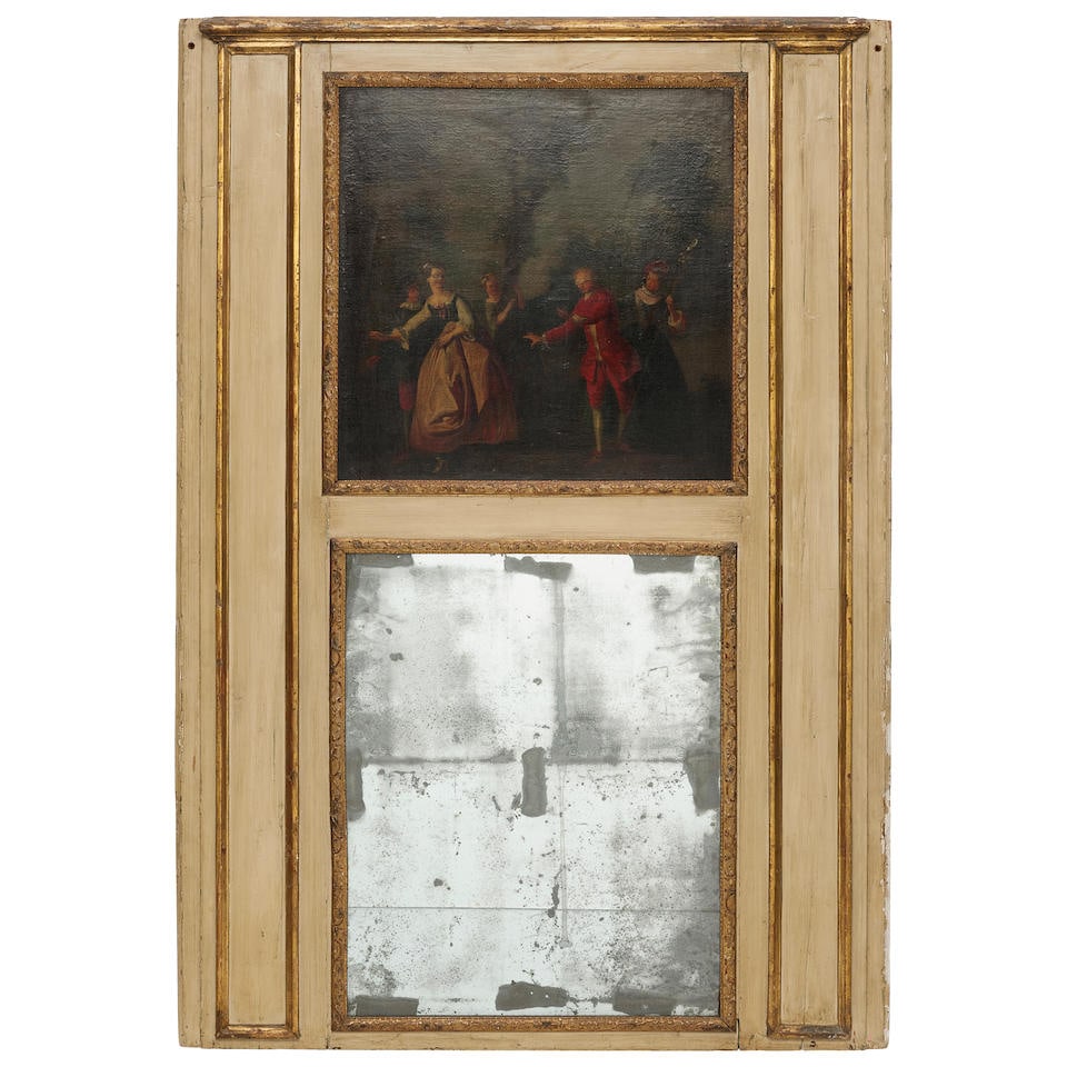 A PARCEL GILT AND POLYCHROME TRUMEAU
