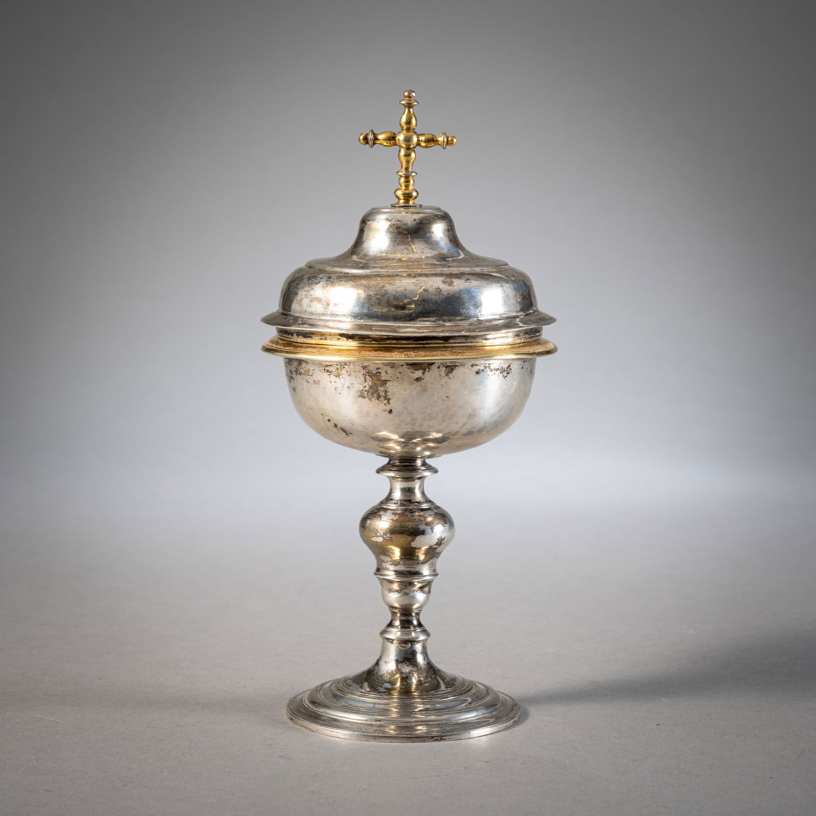 A PARTIAL GILT SILVER CIBORIUM