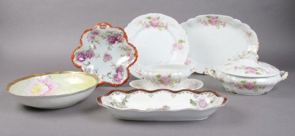 Sold(22) COLLECTION PARTIAL PORCELAIN DINNERWARE(lot of 22) Group of partial porcelain dinner services, including: (9) dinner plates with polychrome floral design and blue and gilt rim, retail marks Rich & Fisher New York, 10"diam, (4) Limoges dinnSee Sold Price