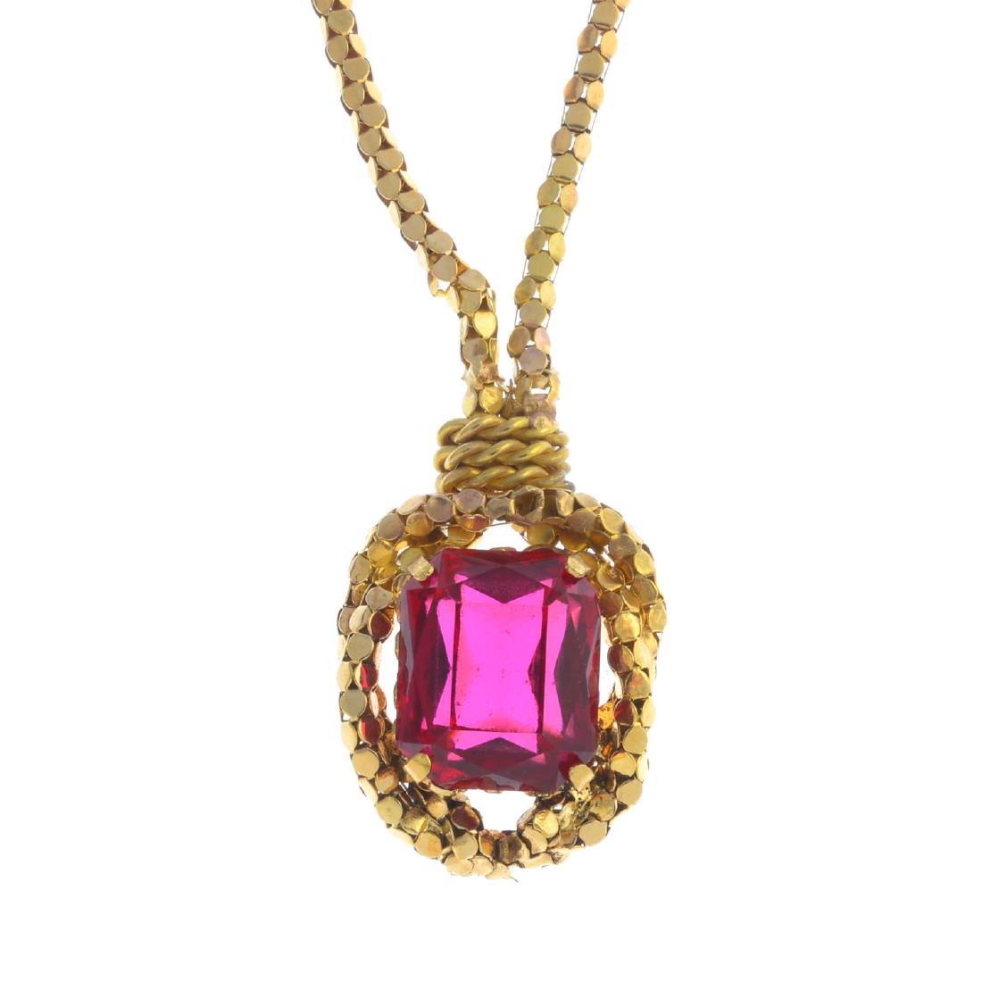 A paste necklace. The rectangular-shape red paste, with