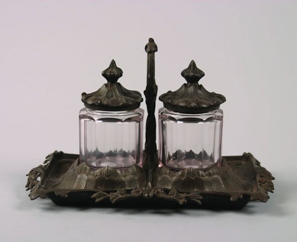 A lot of two large Chinese Canton porcelain oil-lamp vases, gilt bronze-mounted and with glass topsFeb 24, 2026Pair 19th Century Cut Glass DecanterMar 10, 2026Group of Three Antique Glass Oil LampsMar 15, 2026Vintage Mahogany Three Bottle Cut Crystal Tantalus with Silver Plated MountsPair of Fine Vintage Silver Collared Cut Glass DecantersBritish Oil Lamp with Clear Glass Font and Bronze Base, c.1920A pair antique baroque style richly decorated patinated bronze ewer vases with handleFeb 24, 202619th century Continental Footed Bronze mounted Crystal Perfume Scent BottlesFeb 28, 2026Pair Thiebaut Frères Patinated and Gilt Bronze Vases circa 1890Feb 28, 2026Victorian Silver Plate and Cut Glass Cruet Set1 day LeftAntique Victorian Silverplate Etched Glass Condiment Cruet SetMar 07, 2026French Vessel and Stoppered Glass BottleFeb 26, 2026Regency Pagoda Candlesticks Set of 2 Gilt Patinated Bronze Cut Glass England 1820Feb 23, 2026Pair of Chinese Bronze Lamps4 days LeftApollo Studios Bronze & Crystal Perfume BottlesFeb 21, 2026English cruet set, 19th century, consisting of a richly chiseled holder with two cut glass bottles16 hrs Left