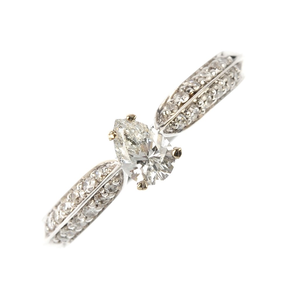 SoldAn 18ct gold diamond single-stone ring. TheAn 18ct gold diamond single-stone ring. The marquise-shape diamond, weighing 3.23cts, with pear-shape diamond sides and tapered shoulders. Accompanied by report number 2655741333, dated 18th May 2006,See Sold Price