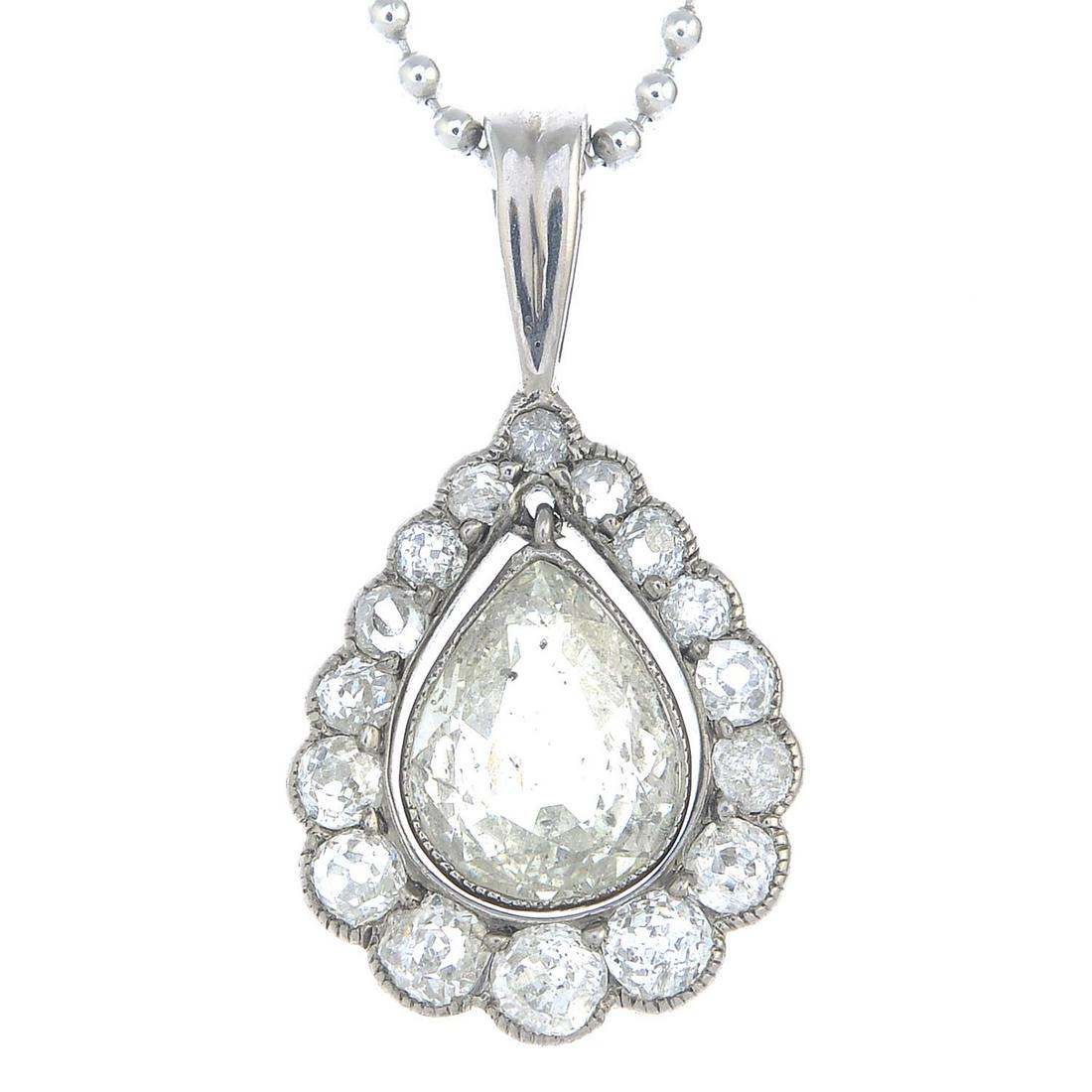 Antique Rose Cut Diamond Teardrop Halo Pendant Necklace 14K White Gold 4.87 GrChairish Auctions4.5(10.3k)$750