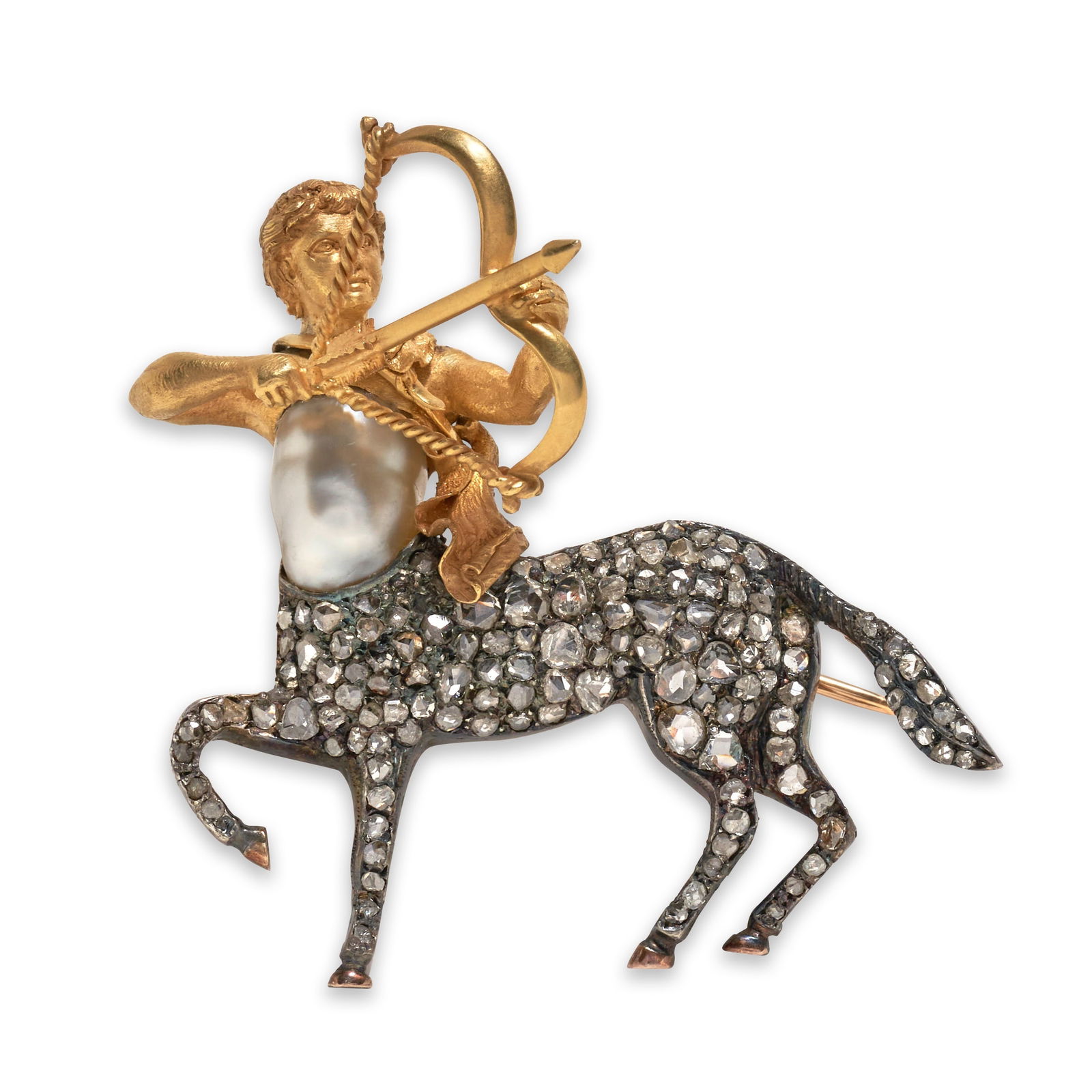 A PEARL AND DIAMOND CENTAUR BROOCH