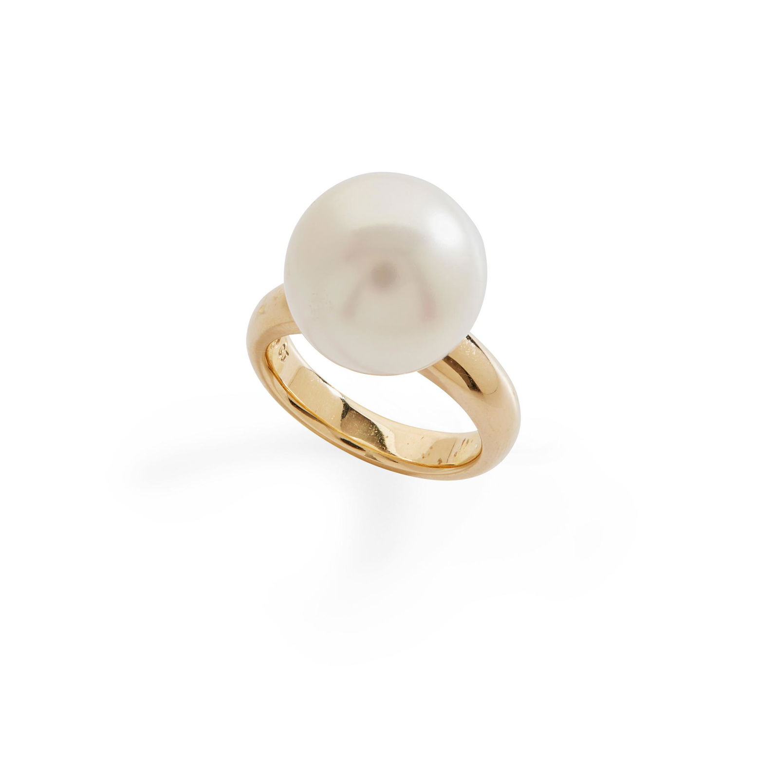 SoldA PEARL COCKTAIL RING set with a pearl of 14.6mm, no assay marks, size P / 7.5, 15.3g.A PEARL COCKTAIL RING set with a pearl of 14.6mm, no assay marks, size P / 7.5, 15.3g.See Sold Price