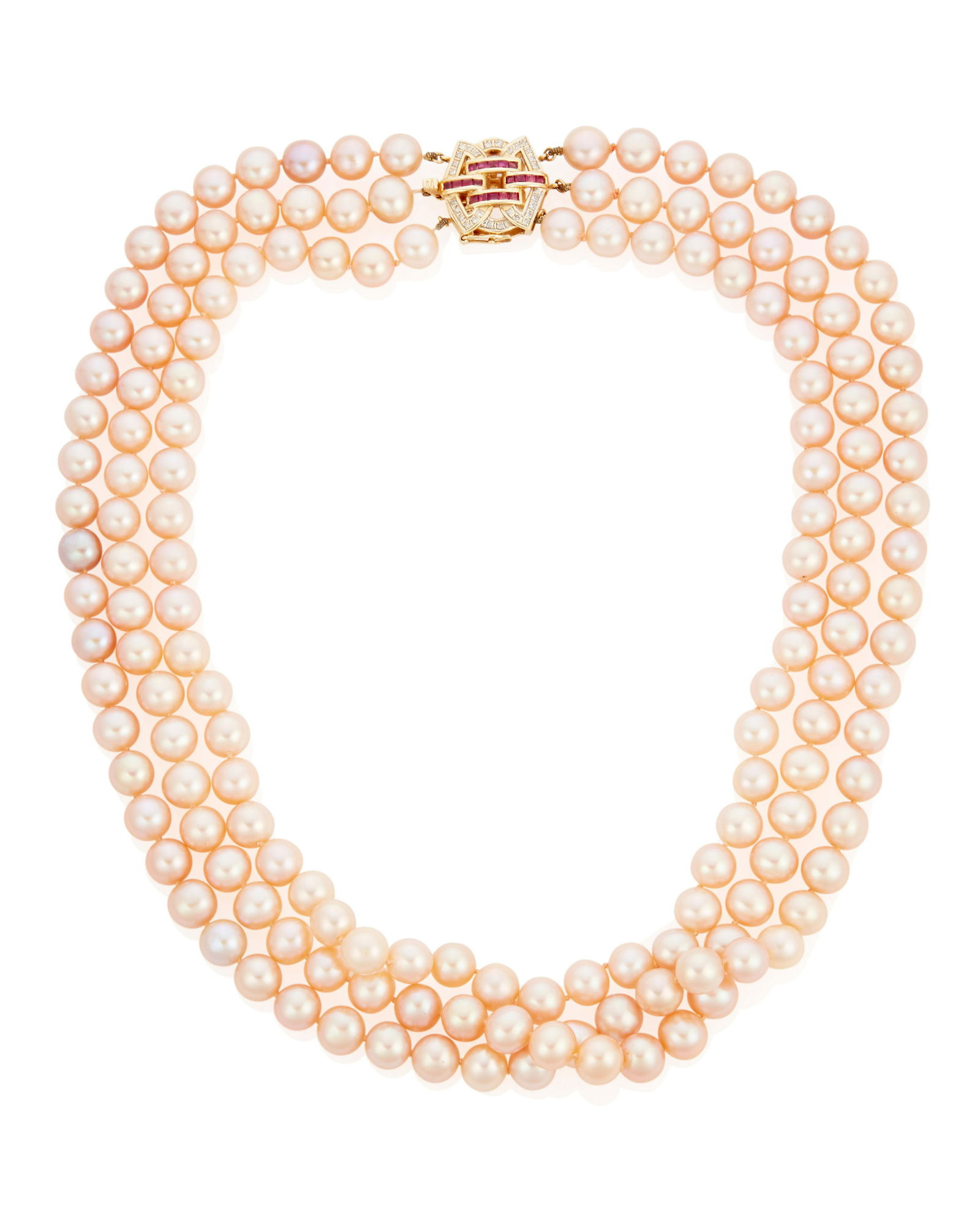 A pearl, ruby and diamond necklace