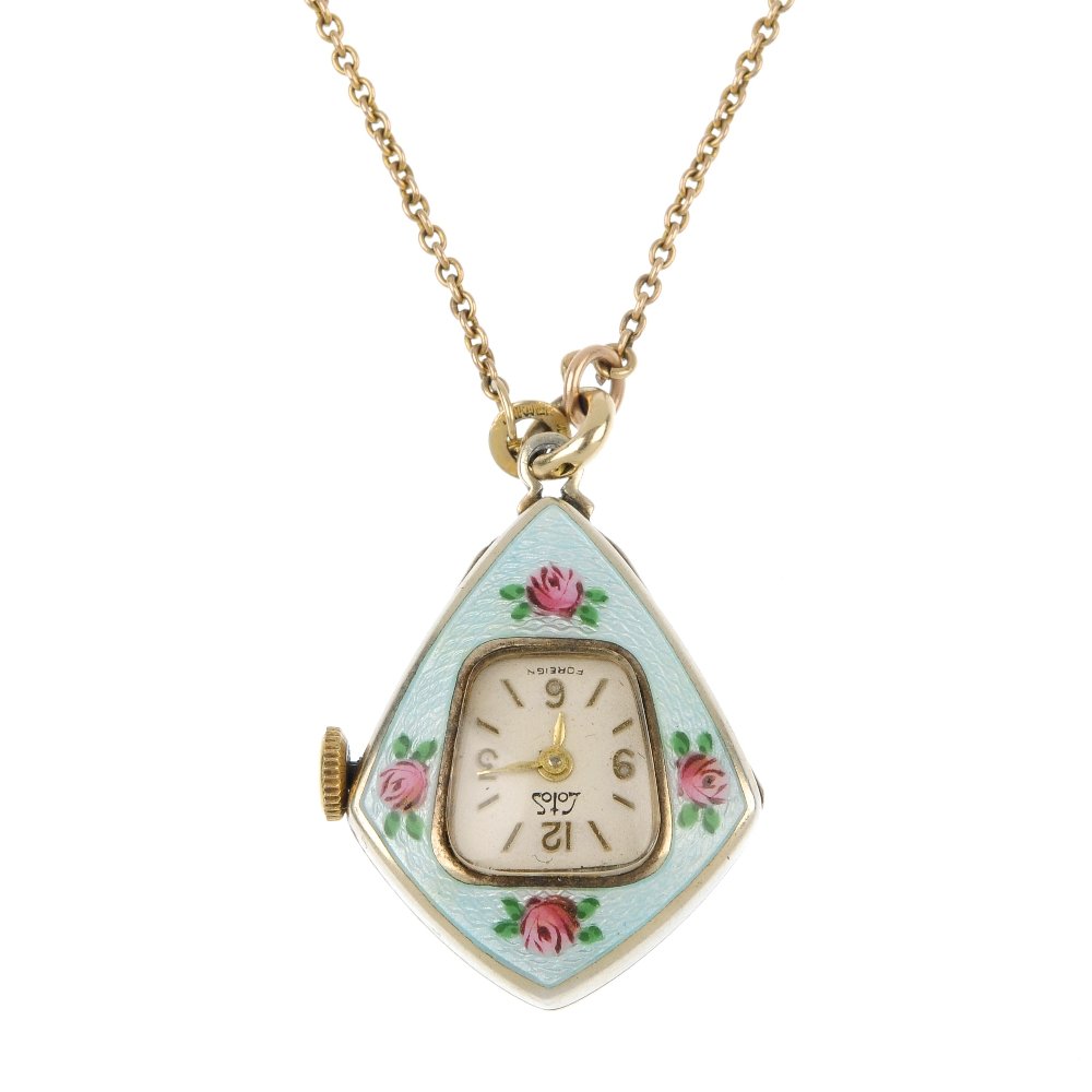 A pendant watch with chain.
