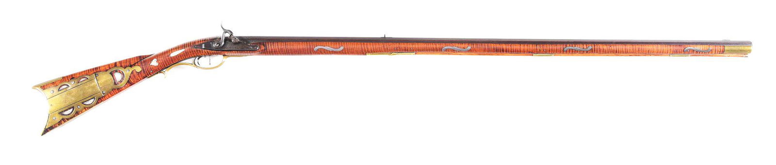 (A) PERCUSSION KENTUCKY RIFLE BY D.B. BORDER.