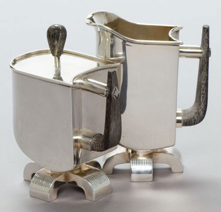 A PETER MULLER-MUNK SILVER CREAMER AND COVERED S