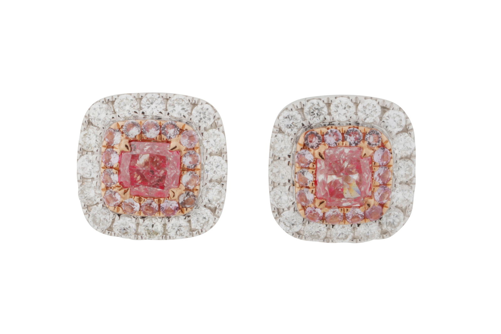 A PINK AND WHITE DIAMOND CLUSTER STUD EARRINGS