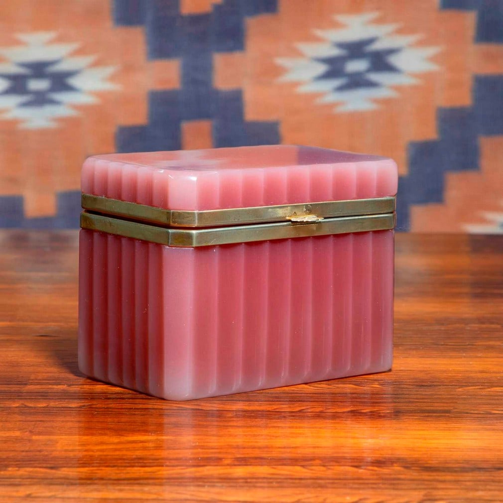 SoldPink ribbed glass cigarette box, c1920Pink ribbed glass cigarette box, c1920 Dimensions: 5.375 inches x 3.5 inches x 4.5 inchesSee Sold Price
