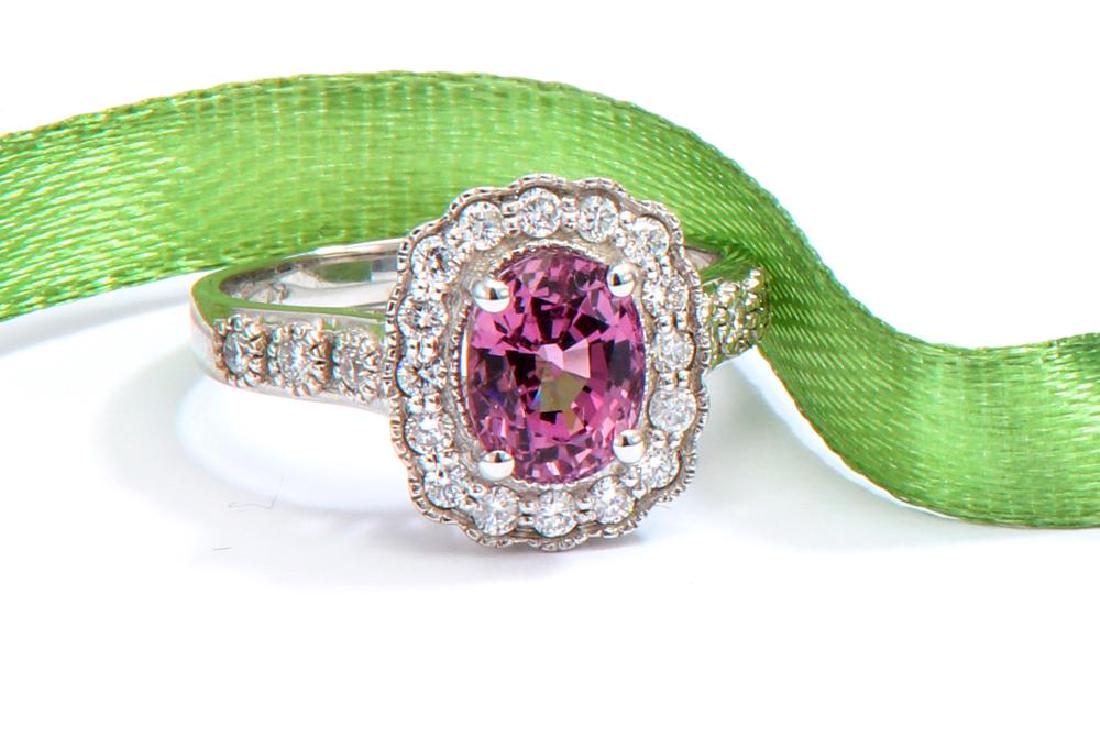 Platinum Cluster Ring with GIA Ceylon Pink Sapphire and Diamond Dual HaloBidhaus4.2(845)$10017 hrs Left