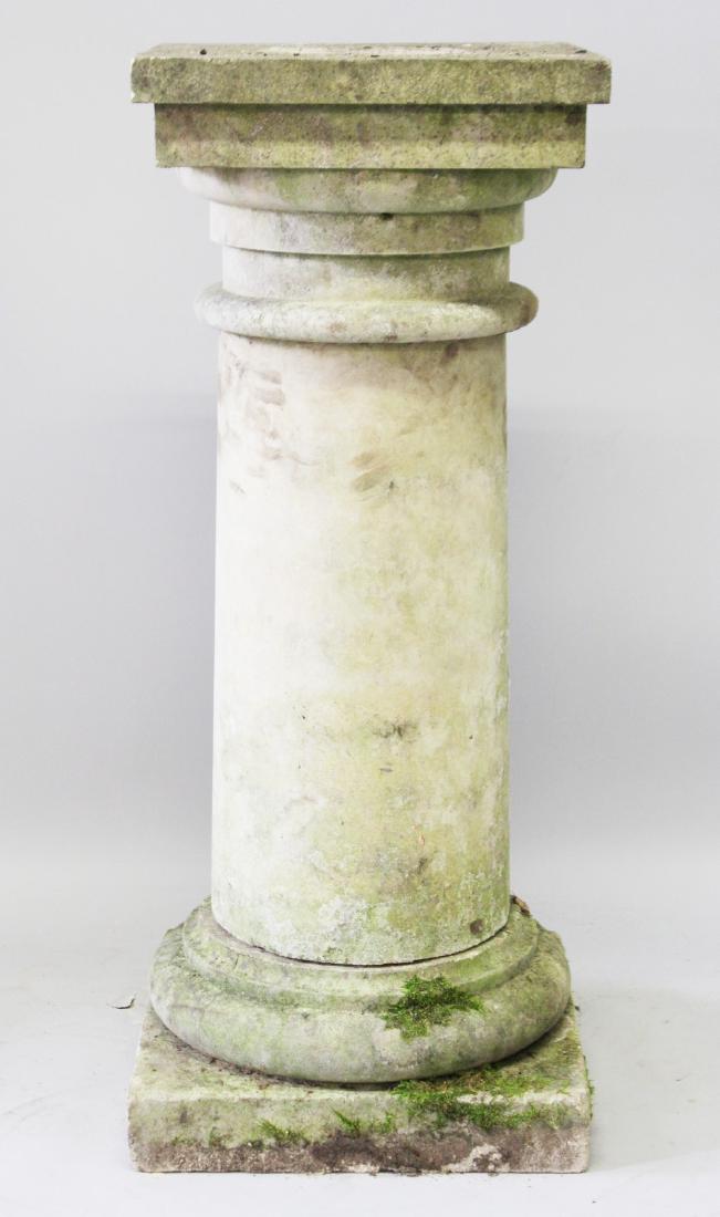 A PLAIN CIRCULAR PEDESTAL with square top and base.