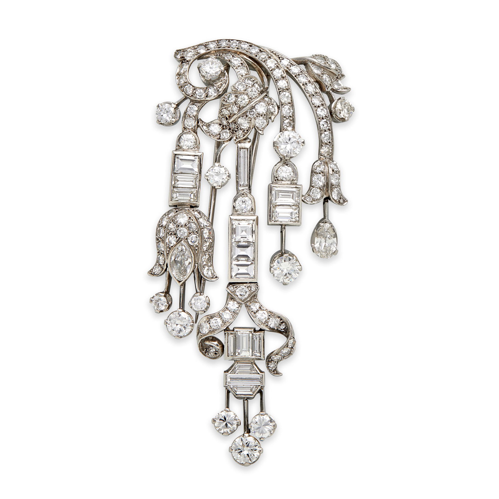 Art Deco Platinum Brooch 12.20 Ct Diamonds 104 European-Cut 16 BaguetteBidhaus4.2(838)$1005 days Left