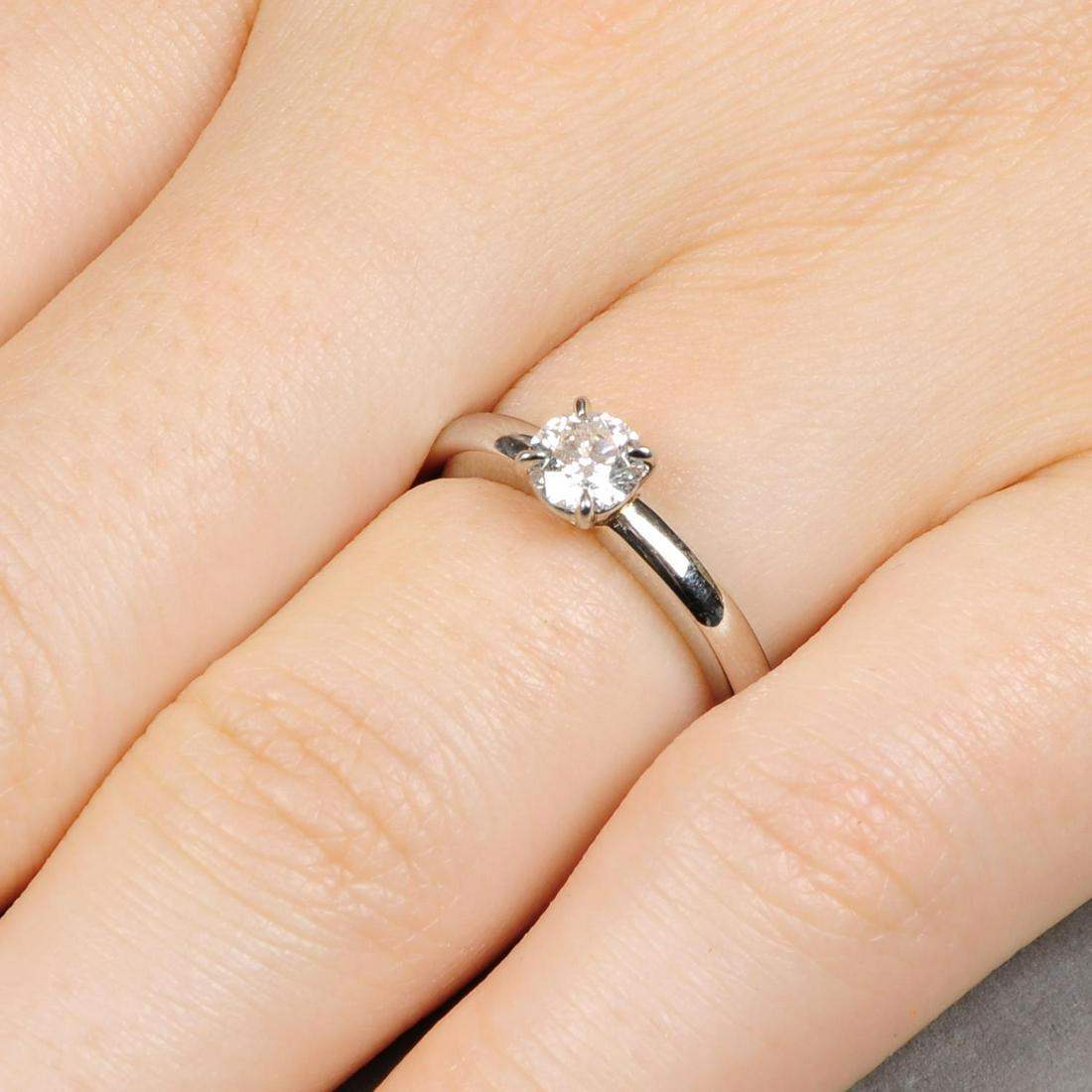 A platinum brilliant-cut diamond single-stone ring.With