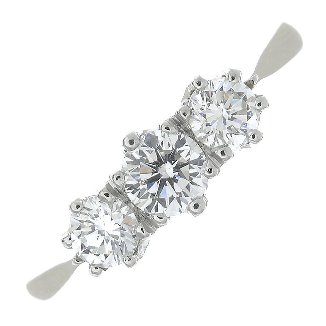 A platinum brilliant-cut diamond three-stone