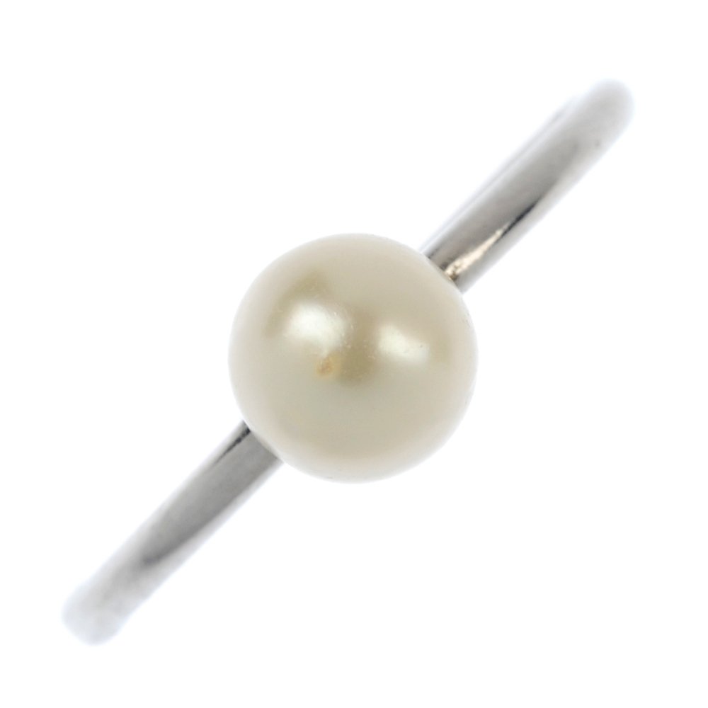 A platinum cultured pearl ring.