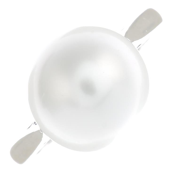 A platinum cultured pearl single-stone ring.