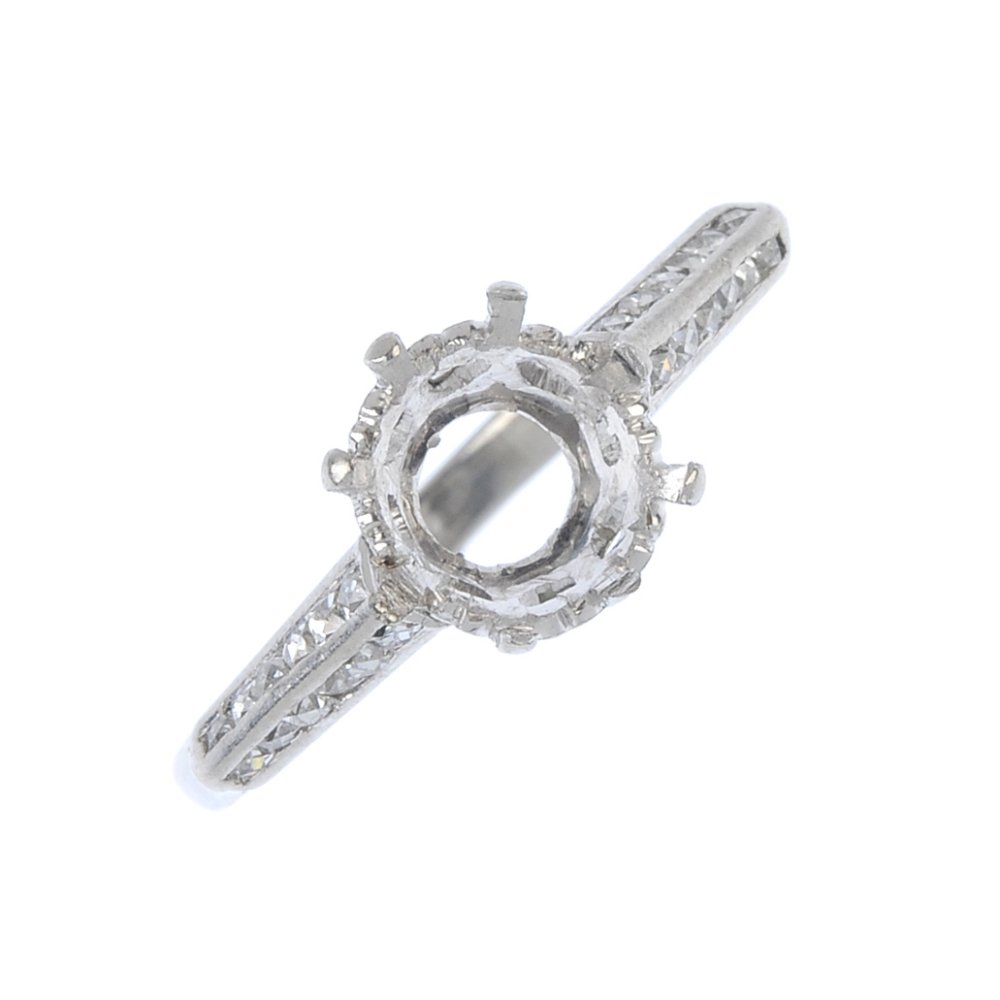 A platinum diamond ring mount. The eight claw setting,