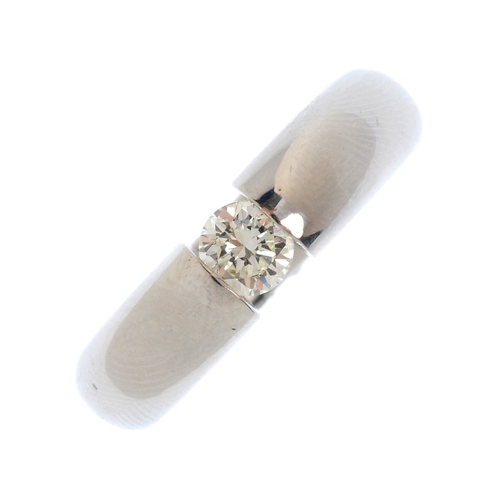 A platinum diamond single-stone ring. The tension-set