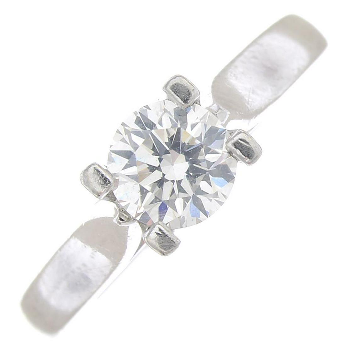 A platinum diamond single-stone ring.Estimated diamond