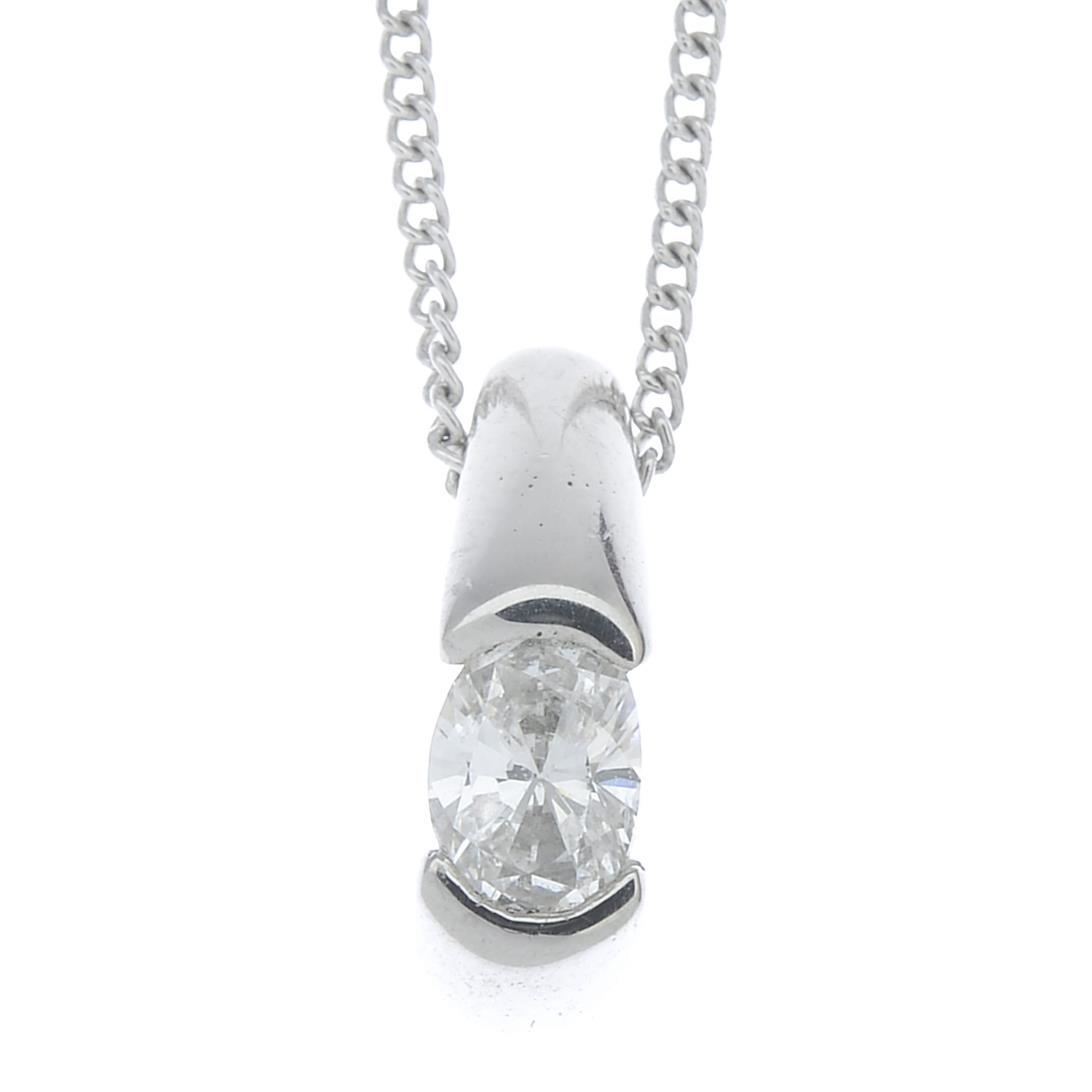 A platinum oval-shape diamond single-stone pendant,