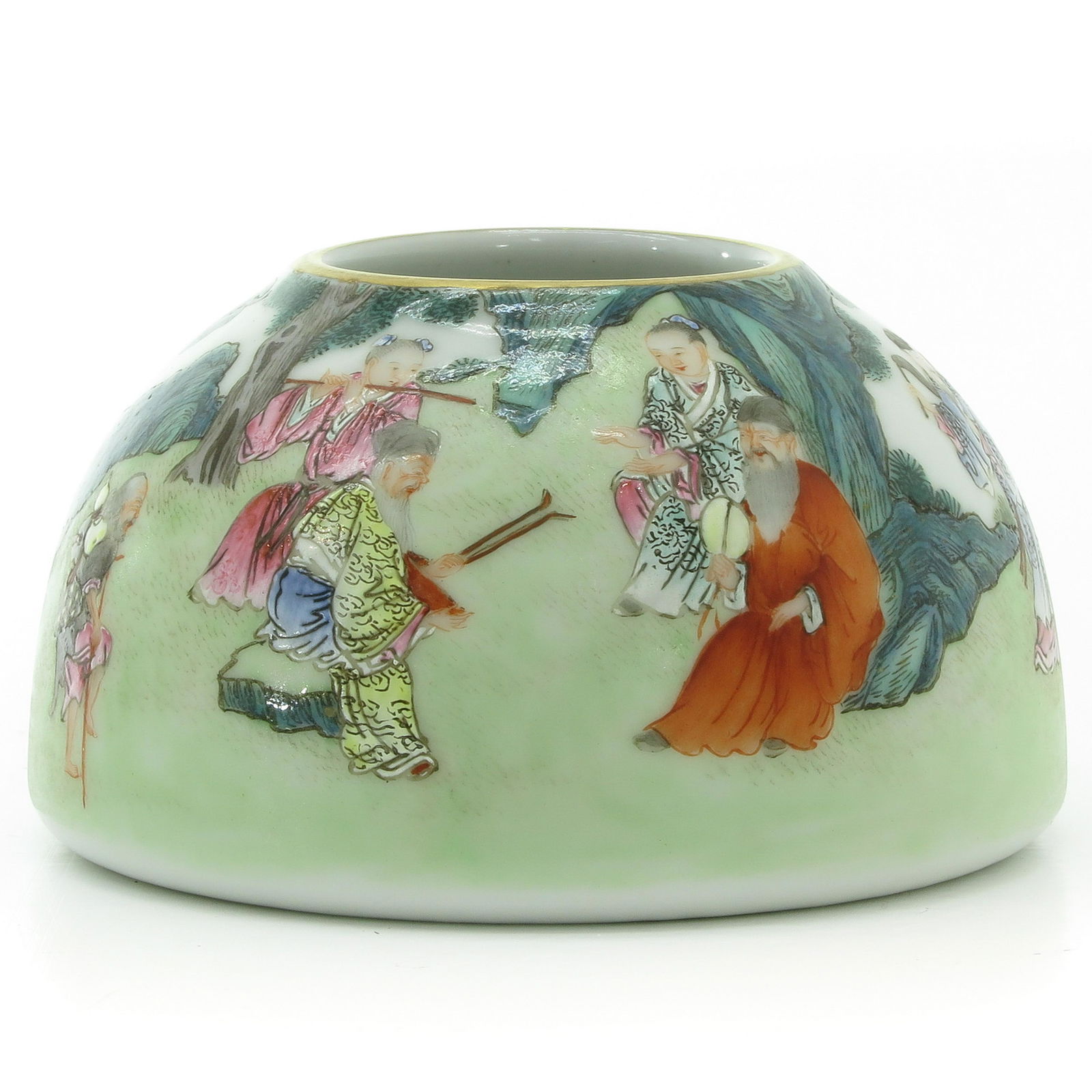 SoldBrushwasherpolychrome decor, 6 cm. tall, marked on the bottom with 6 characters and double ring.See Sold Price