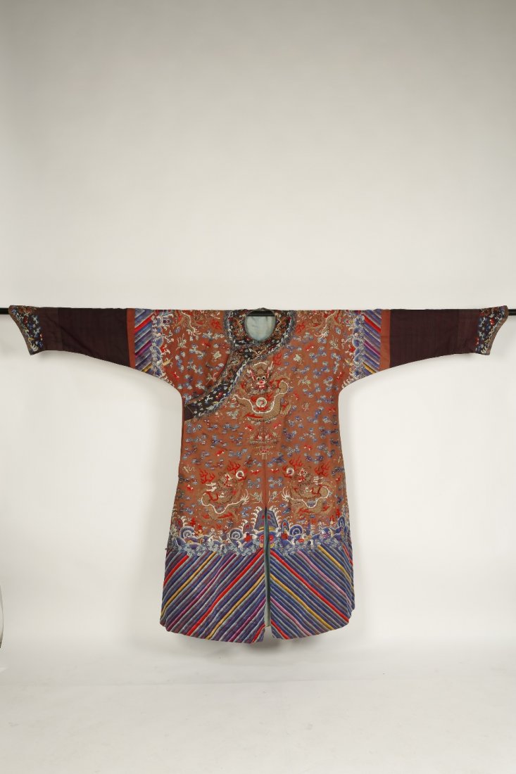 Late Qing Dynasty, Red Satin Jifu Robe with Gold-Thread Embroidered Five-Clawed Dragons7 days LeftLate Qing Dynasty, Imperial Yellow Satin Informal Robe with Hidden Dragon Medallions7 days LeftQing Dynasty Embroidered Dragon Robe, Round Neck with Disc Buttons, Tribute Satin Dragon RobeMar 04, 2026Chinese Embroidered Silk Robe - Red Ground, Metallic Threads, Figural MedallionsA CHINESE EMBROIDERED DRAGON ROBE5 days LeftA CHINESE IMPERIAL EMBROIDERED DRAGON ROBE5 days LeftQing Chinese Longpao Silk Embroidered Dragon RobeMar 14, 2026Chinese Blue and Gold Kesi Court Robe with Dragons2 days LeftSilk Embroidery Cloud and Dragon Pattern Dragon Robe2 days LeftA Fine Qing Stone-Blue Brocade Changfu Robe Woven with Round Dragon MedallionsMar 08, 2026A Fine Qing Bright Yellow Kesi Dragon Robe with DragonMar 08, 2026A Fine Qing Treasure-Blue Satin Embroidered Jifu RobeMar 08, 2026Chinese Silk Embroidered Court Robe, 19th C2 days LeftChinese Gold Embroidered Silk Court Robe, 19th C2 days LeftChinese Silk Dragon Robe with Embroidery4 days LeftChinese Silk Robe with Dragon & Phoenix Motifs4 days Left