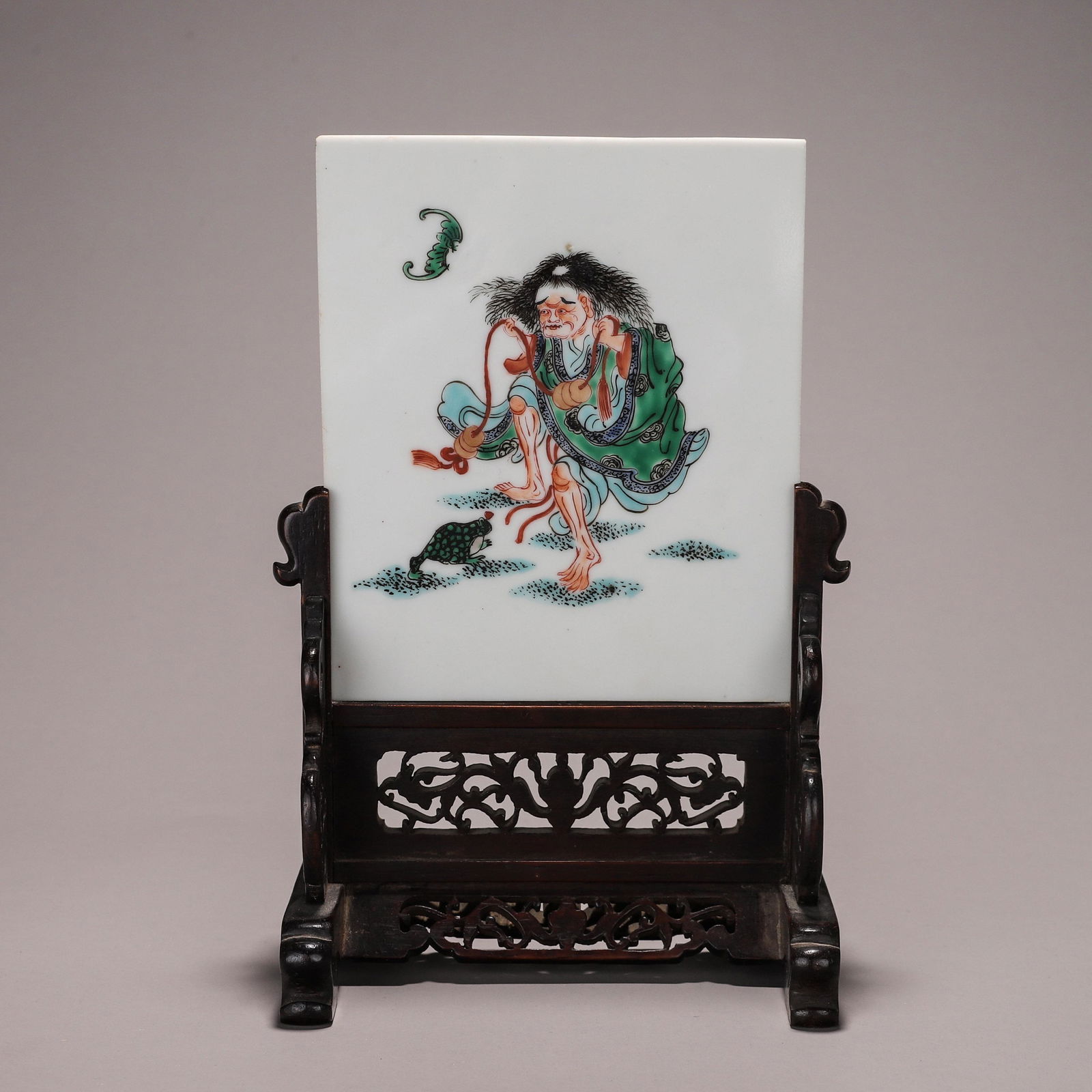 A Porcelain 'liuhai' Table Screen And Stand.