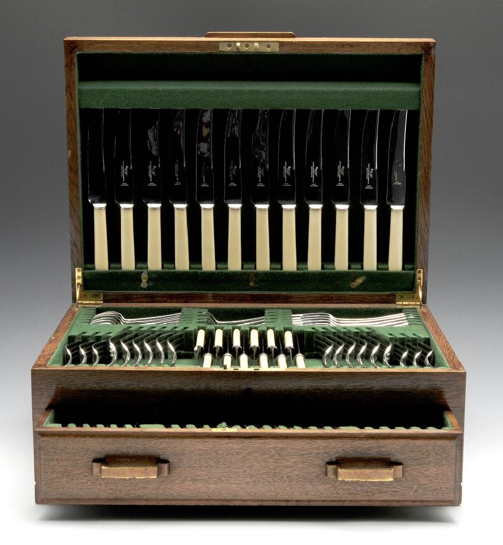 A composed lot of eight various antique French silver-plated CHRISTOFLE cutlery sets4 days Left(26) ENGLISH THOMAS BRADBURY STERLING SILVER FISH SERVICE & OTHER SERVING PIECES3 days Left(18) FRANCIS HIGGINS III LONDON VERMEIL STERLING & MOP DESSERT SERVICE3 days LeftInlaid Silver Plated Silverware Set Holmes & Edwards SilverwareMar 17, 2026Victorian Mother-of-Pearl Handled Dessert Cutlery Set by Walker & HallVintage Canteen of CutleryAlvin Chapel Bells Sterling Silver Flatware Service Dinner Set of 55 Pieces with Wooden Case6 days LeftEnglish Mother-of-Pearl Fish Service, 24 Pcs.Mar 12, 2026American Sterling Silver Flatware ServiceMar 15, 2026American Sterling Silver Flatware ServiceMar 13, 2026Vintage Wallace Plate Silver Shod Flatware in Lined Ornate BoxFeb 28, 2026American Sterling Silver Flatware ServiceMar 13, 2026American Sterling Silver Flatware ServiceMar 13, 2026American Sterling Silver Flatware ServiceMar 15, 202655 Piece Sterling Silver Wallace "Saxon" Flatware SetFeb 28, 2026Vintage 750 Silver Flatware Set 50 Pieces Fitted Box with T MonogramFeb 27, 2026