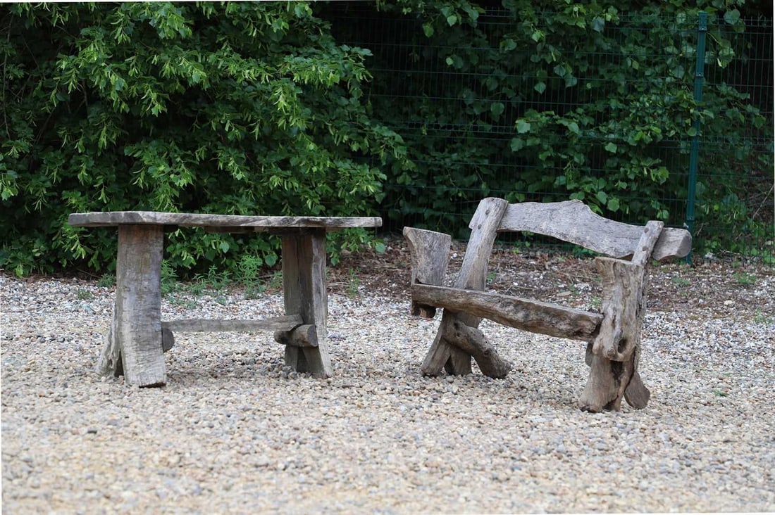 A primitive wooden bench,
