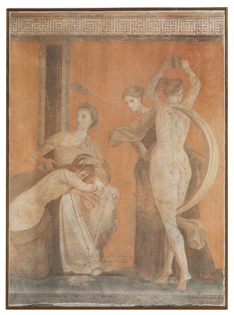 A printed fresco-style panel,