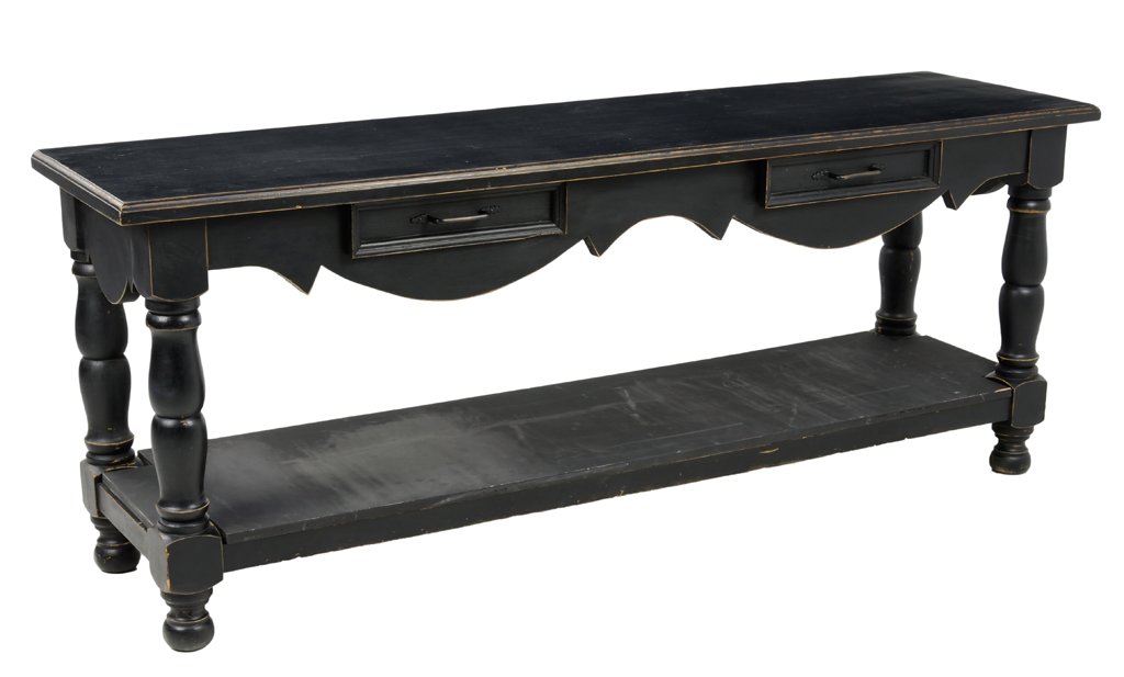 A PROVINCIAL EBONIZED TWO DRAWER CONSOLE TABLE