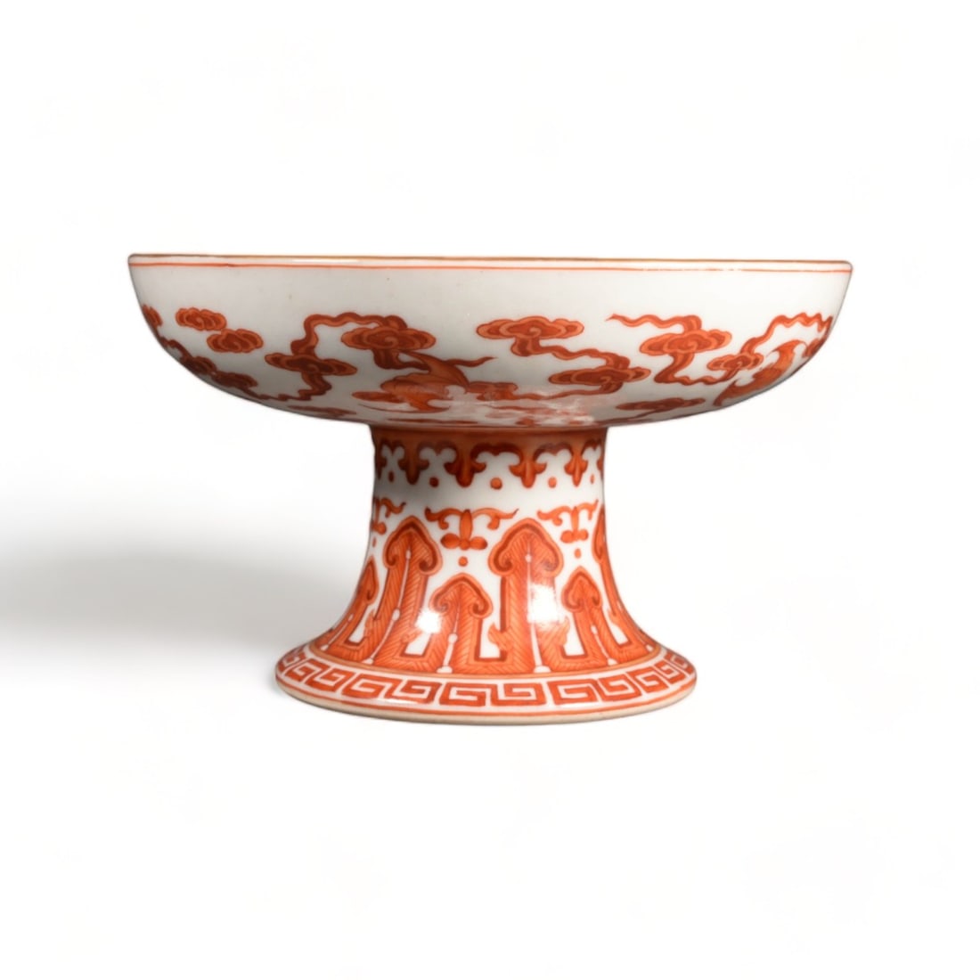 A QING IRON-RED GILT-DECORATED STEM DISH