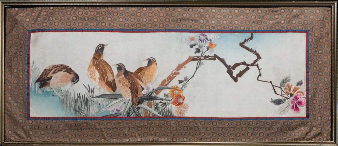 Large-Scale Champagne-Toned Guangdong Embroidery Singing Birds and Fragrant FlowersMar 04, 2026A Set of Top-Grade Gold Thread Embroidery of Flowers and BirdsMar 04, 2026Gold Thread Guangdong Embroidery of Flowers and Birds, Qing DynastyMar 04, 2026AN EARLY 20TH CENTURY CHINESE SILK EMBROIDERED PANEL OF A BIRD Late Qing/Republic. 94 cm x 38 cm.Feb 10, 2026Large-Scale Guangdong Embroidery Bright Future AheadMar 04, 2026Fabric Embroidery21 hrs LeftGold Thread Guangdong Embroidery of Flowers and Birds, Republican PeriodMar 04, 2026A large-size embroidery of the Republic of China "Heron Lianke"4 days LeftA picture of embroidery from the Republic of China period is a phoenixFeb 27, 2026Pair Vintage Chinese Embroidered Silk Textiles13 hrs LeftChinese Bird and Flowers Embroidery7 days LeftChinese Embroidery on Silk, Mandarin Ducks with Inlaid Hardwood Frame, 22.5 x 16.5 inFeb 20, 2026A "GOLDEN PHEASANT AND BAMBOO WITH SPARROWS", PAINTING ON SILK BY XU XI.徐熙3 days LeftA Pair of Perfect Flower-and-Bird Embroidery, Republic of ChinaFeb 24, 2026Large-Sized Guangdong Embroidery with Flower and Bird MotifsFeb 14, 2026Chinese Bird and Flowers Embroidery7 days Left
