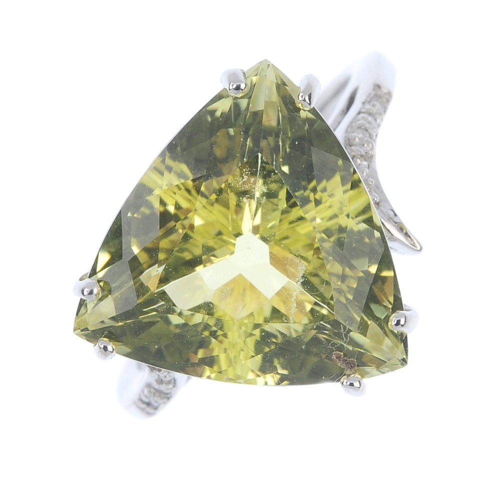 ROUND CUTCITRINE WITH DIAMOND ACCENTS RING