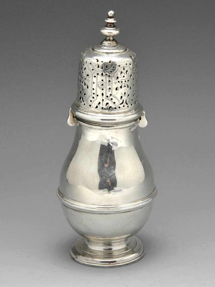 A Queen Anne Britannia silver caster.