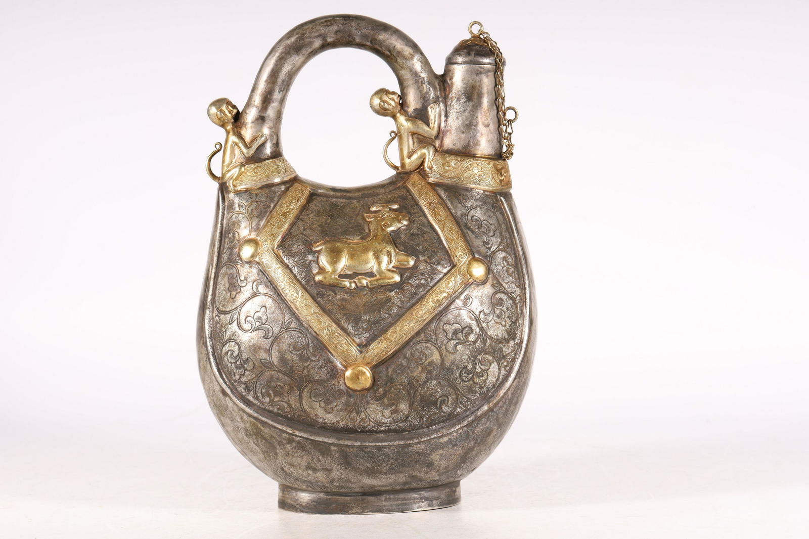 An Exquisite Gilt Silver Horse Pattern Ewer