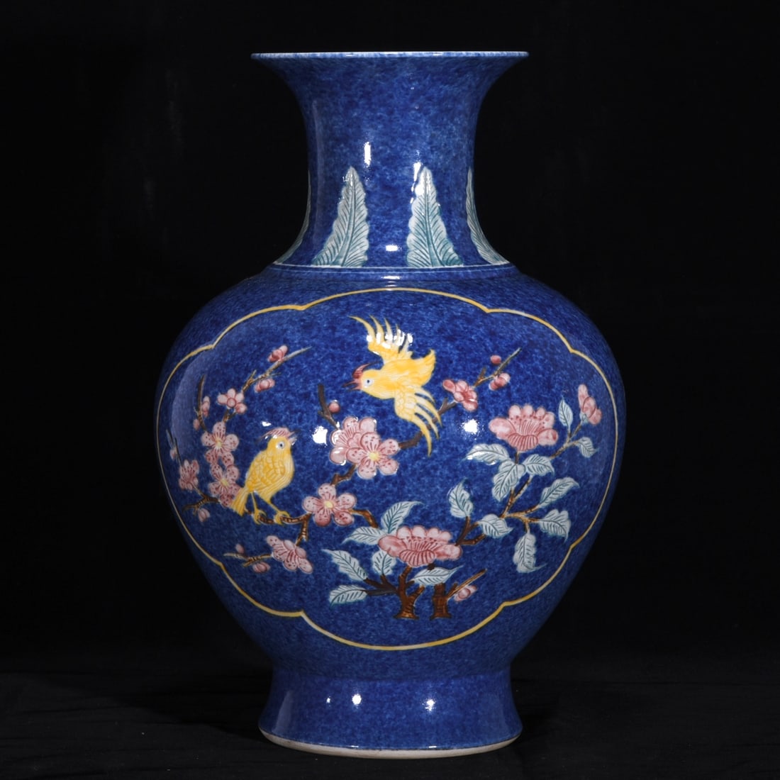 A Rare Blue Glazed Flower and Bird Pattern Vase