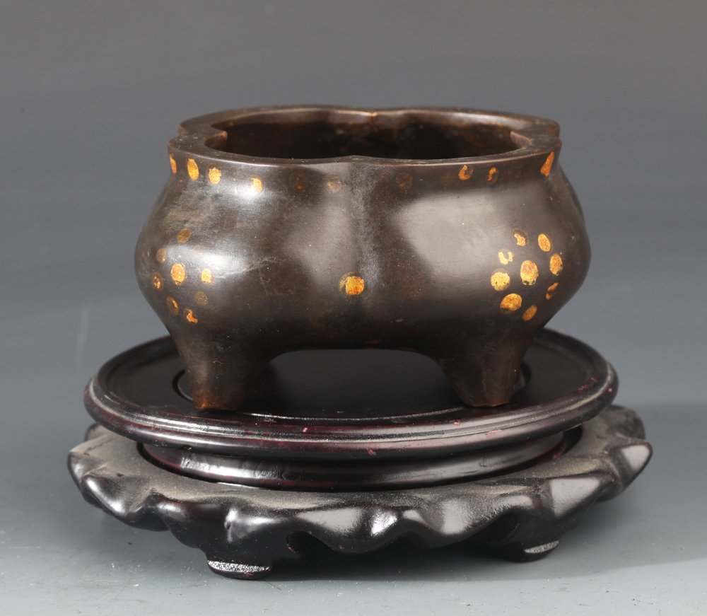A FINE SPRINKLE GOLD STYLE ROUND BRONZE CENSER