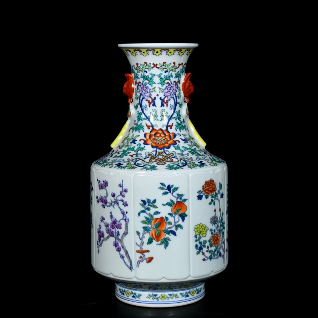 A Rare Doucai Flower and Fruit Pattern Bat-Ears Vase