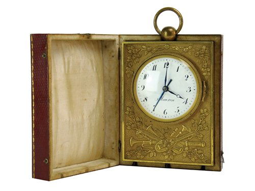 A rare Empire gilt-bronze table clock, signed Meuron, F
