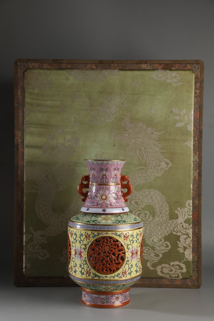 A Rare Enamel Lotus Pattern Vase